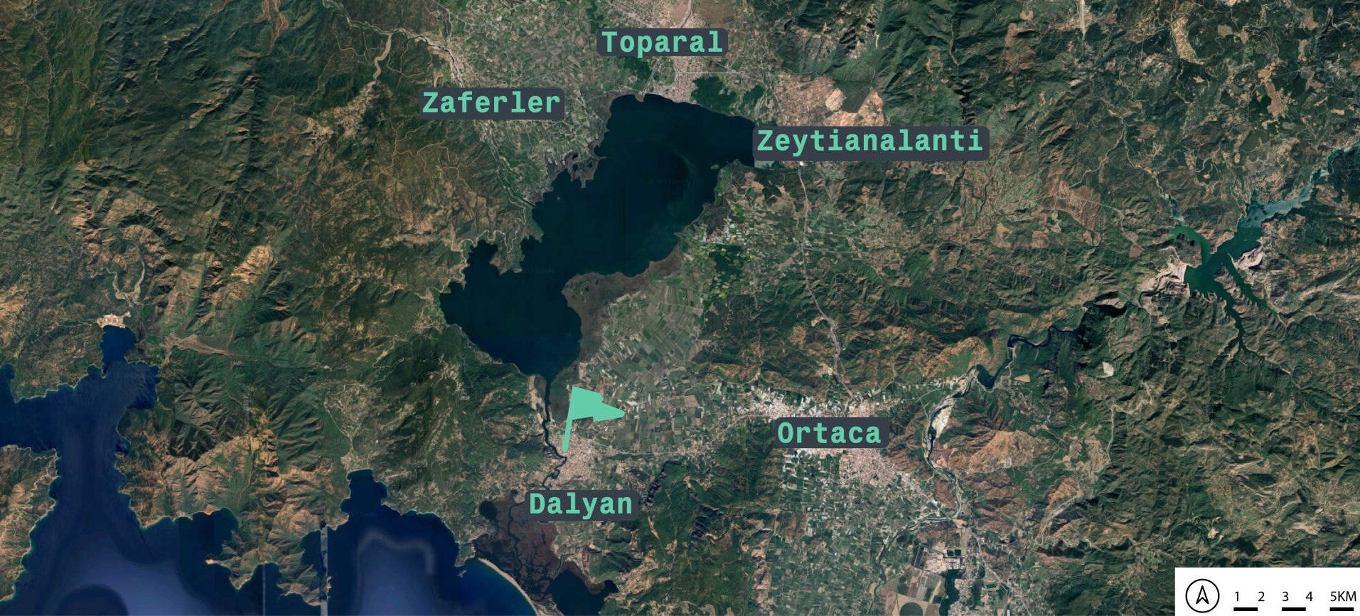 Voor Het park hebben we een locatie ter beschikking gekregen in Dalyan Turkije. Dalyan is een stad aan de zuid kust van Turkije, De stad is erg afhankelijk van toeristen die komen kijken op de mooie stranden. Op de locatie is het meestal een stuk warmer dan in Nederland en moesten we dus rekening houden met bomen die goed tegen hitte kunnen.