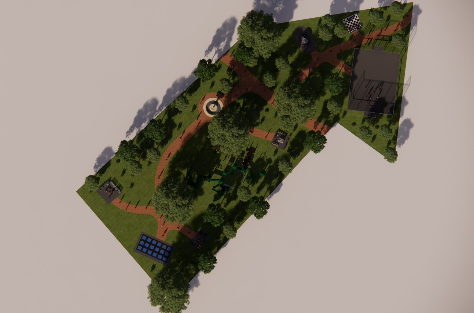 Het park is de 3e opdracht die ik heb gekregen op school. Bij deze opdracht kregen we de opdracht om een plein te ontwerpen. Voor het ontwerp moesten we met een aantal klasgenoten bepalen wat er allemaal in het park moest komen waarvoor we eerst een aantal parken hebben onderzocht.