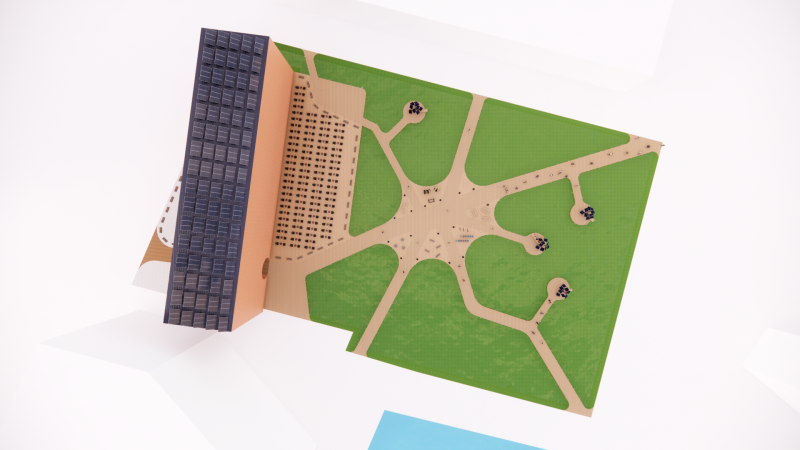 Het plein is een plan voor op het destijds braakliggende terrein op het paleis kwartier aan de onderwijs boulevard in Den Bosh. Deze locatie ligt midden in Den Bosh op loop afstand van meerdere scholen en het centraal station van Den Bosh. Bij het ontwerpen van het plein hebben we rekening gehouden met meerdere dingen zoals hoeveel mensen er lopen, waar mensen heen willen lopen en wat mensen verwachten van een plein. Zo is er rekening gehouden met bredere paden tussen de HAS en Centraal station.