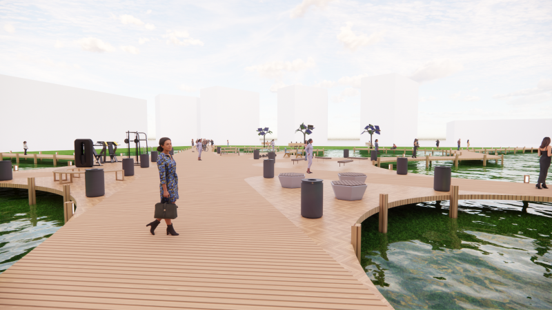 Op het plein heb ik gekozen voor een aantal belangrijke aspecten zoals lopen zitten en natuur. Zo is het zo dat er in het midden van het plein een pad dwars over het plein loopt zodat je snel aan de andere kant kan zijn voor de mensen die recht door willen en zijn er speciale bankjes boven het water aangebracht zodat je lekker in het hete weer met je benen boven het water kan zitten. deze bankjes zijn ook voorzien van zonnepanelen zodat je altijd je telefoon kan opladen. deze bankjes zijn aangebracht op een locatie waar veel mensen het kunnen zien zodat hang jeugd er geen zooi van al maken.